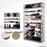 A perfect storage solution for the person who has too many shoes this 10 Tier Stackable Shoe Rack - 50 Pair! Unclutter your life and free up that wasted space into a neat tidy tower of shoes and be the envy of everyone! Picking out a shoe to fit your outfit is so much easier and convenient - with all your shoes conveniently located in one place, you'll never have to go looking for missing shoes ever again! Constructed of sturdy steel tubes and resin siding connectors, this lightweight shoe rack and be built into any number of levels as needed.
