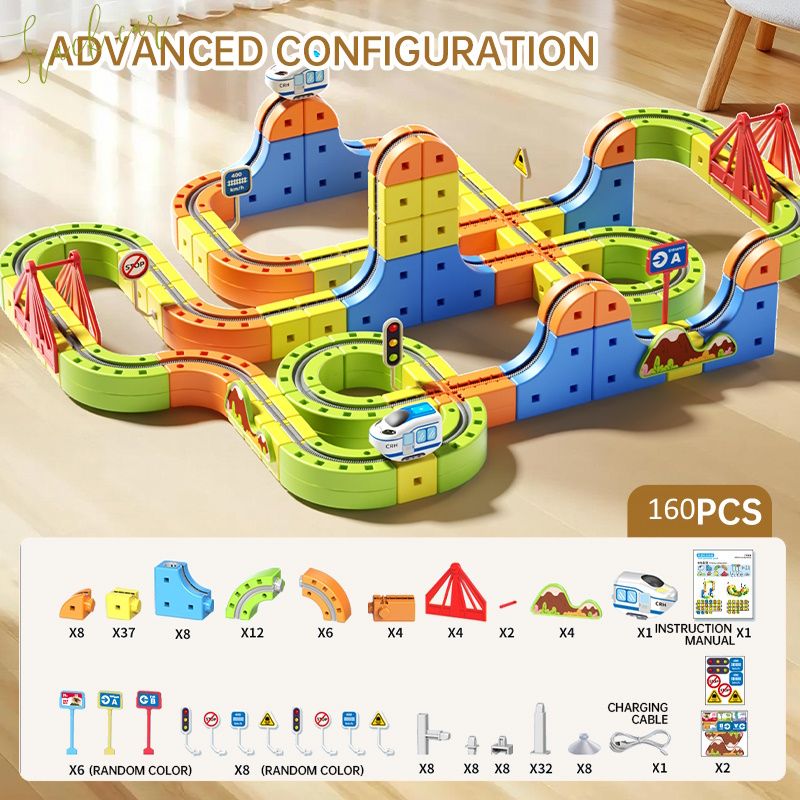 160pcs Rail Train Set 3D Embedded Race Track Gravity Defying Motorized Car Rail Cube DIY Montessori Sensory Building Toy STEM Christmas Birthday Gift