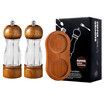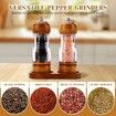 2 Pcs Wooden Pepper Mill Grinder Set with Base,6 inches Acrylic Salt & Pepper Shakers with Adjustable Coarseness, Refillable Manual Grinder for Kitchen