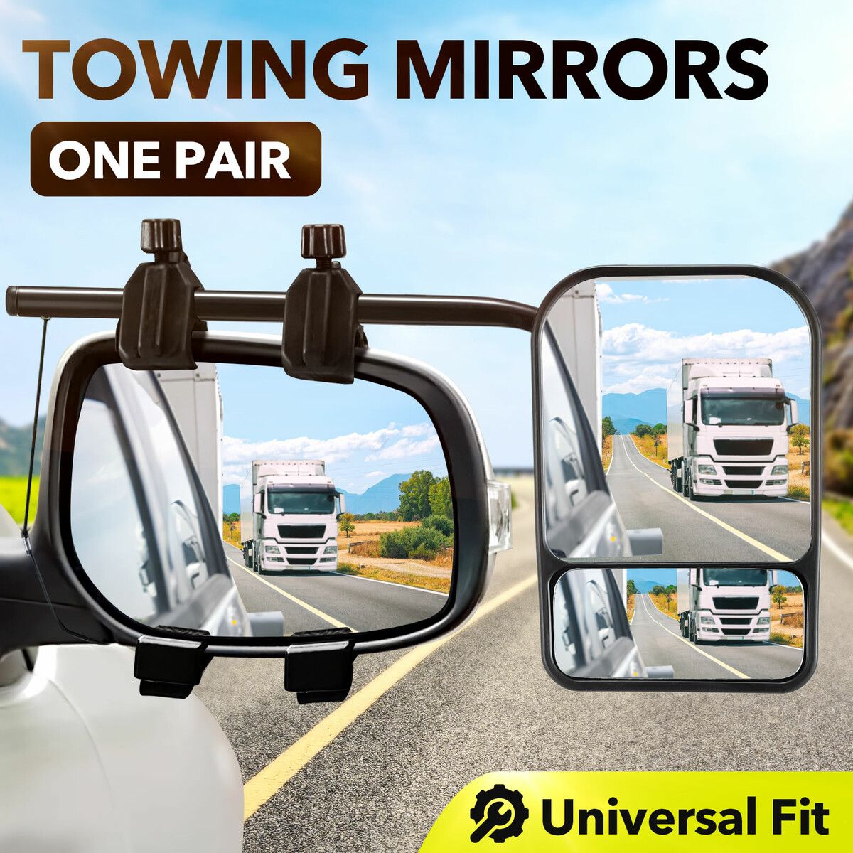 2 Towing Mirrors Car Safety Convex Flat Mirror Pair Clamp On Clipon Caravan Side 4X4 Trailer Universal Fit Offroad Camper Travel RV Truck Vehicle