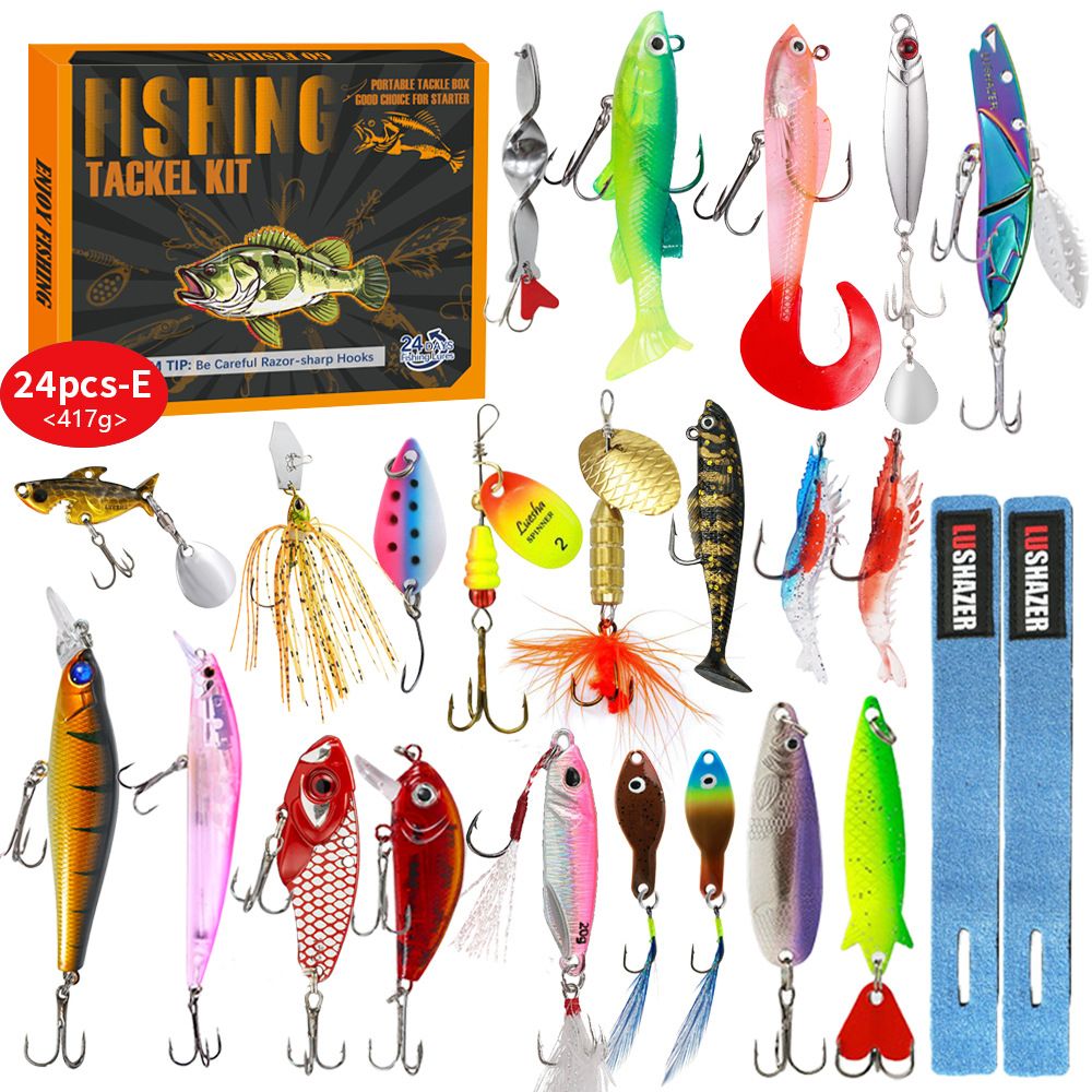 24 Pcs Fishing Gear Lures Bait Set Christmas Countdown Advent Calendar Christmas Fishing Gifts For River Sea Pond