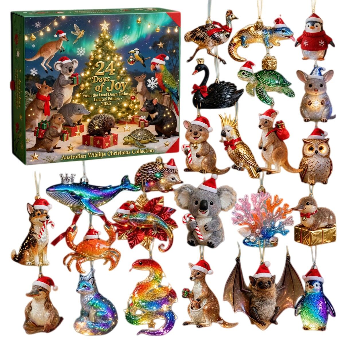 24Days Australian Aussie Wildlife Christmas Advent Calendar 24Pc 3cm Flat Acrylic Blind Box Ornament Set Kids Holiday Gift
