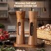 2Pcs Wooden Salt and Pepper Grinder Set, 8 inch Manual Salt and Pepper Mill with Adjustable Coarseness, Refillable Pepper Grinder for Kitchen
