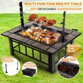 3-in-1 Extra Long Multi-Function BBQ Pit Table with Removable Chicken Roaster