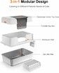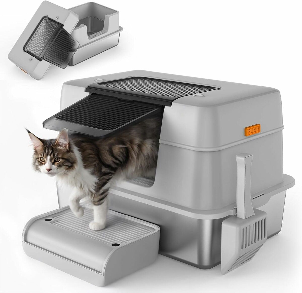 3-in-1 Stainless Steel Cat Litter Box with Lid,Large Enclosed High Side Metal Cat Litter Box with Pedals Suitable for Big Cats Grey