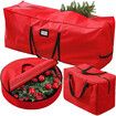 3 Pack Christmas Tree Storage Bag for 7.5 Ft Artificial Trees up,Durable Waterproof with Reinforced Carrying Handles,Xmas Holiday Garland Bag Storage(Red)