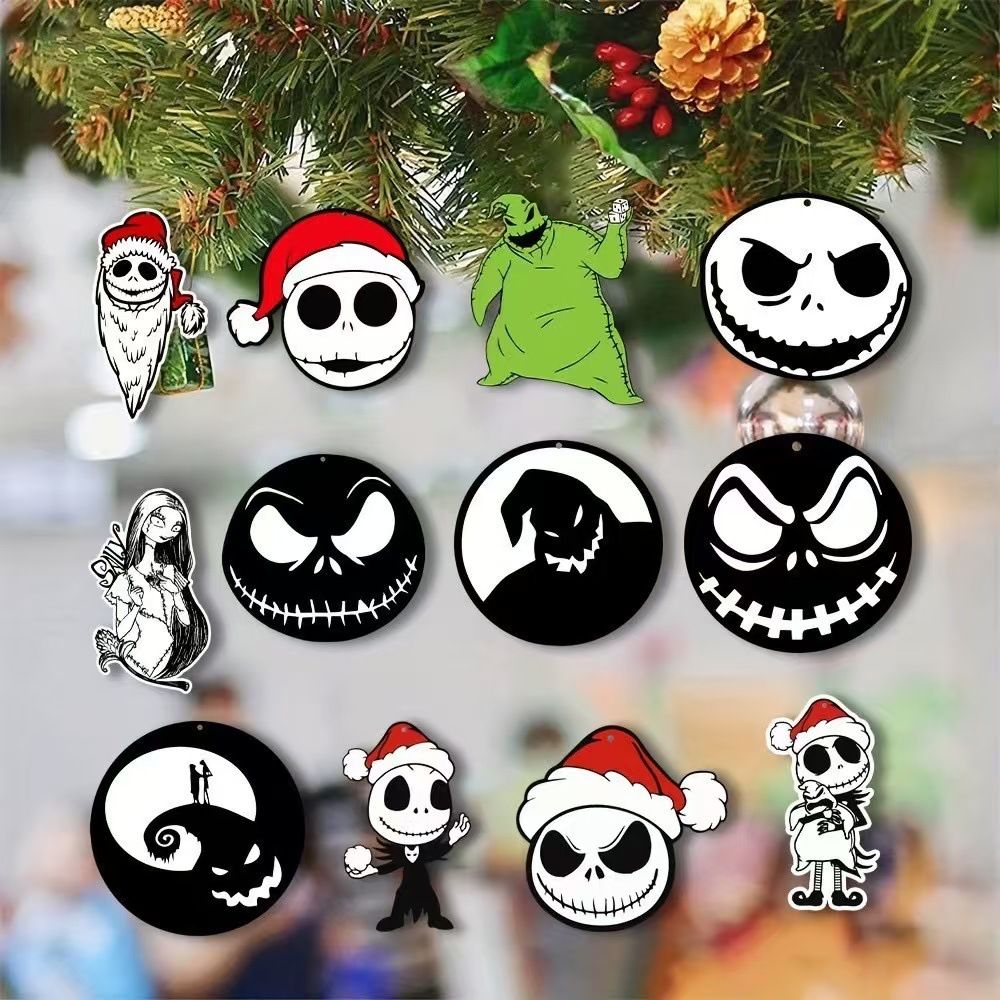 36PCS Halloween Christmas Nightmare Ornaments 8cm Wooden Hanging Set Mixed Theme Indoor Tree Home Party Holiday