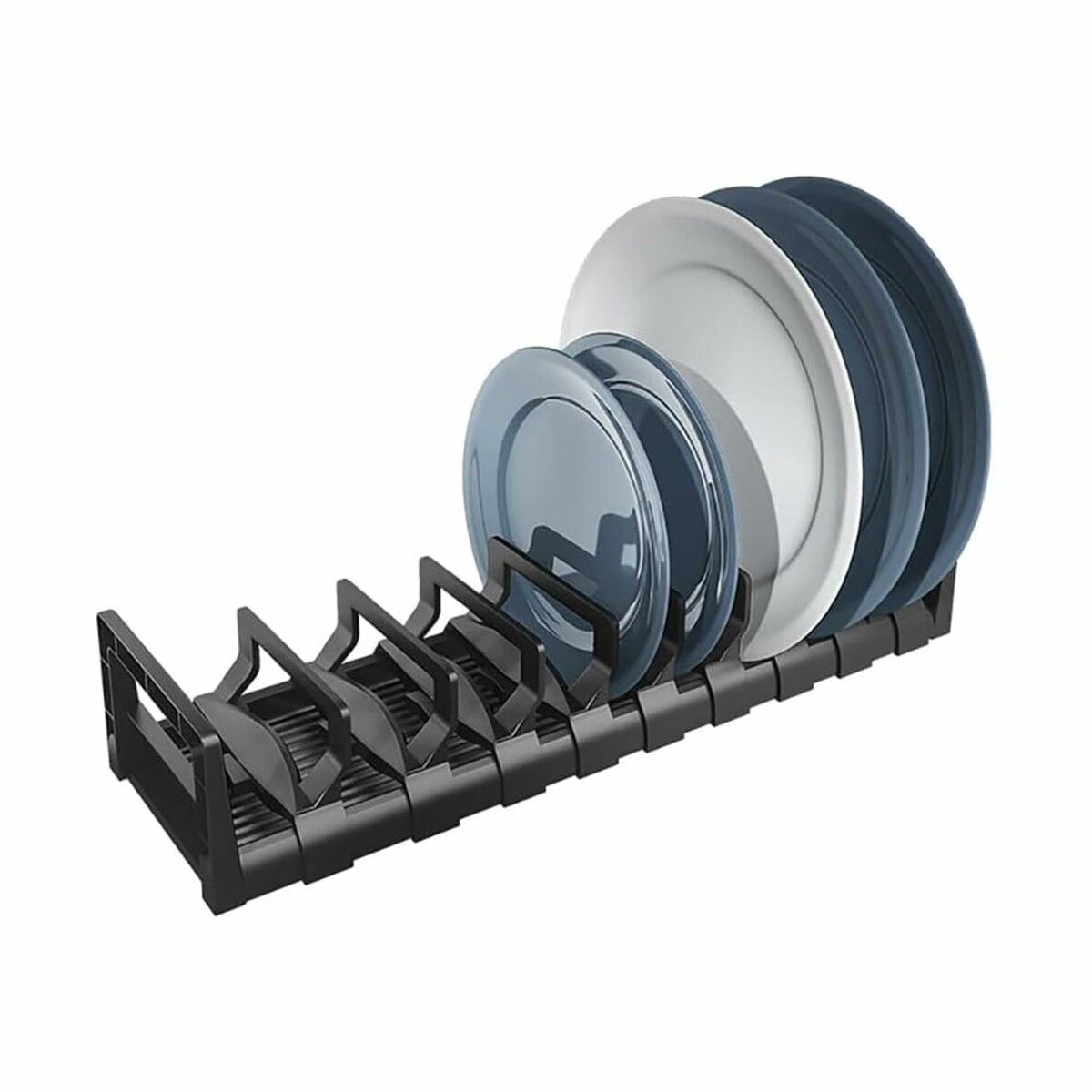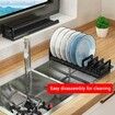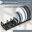 45cm 12 Slots Dish Drying Rack Drawer Organizer Space Aluminum Adjustable Bowl Holder with Removable Cabinet Dish Storage Shelf Plates Pots Pans