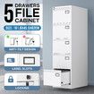 5 Drawer File Cabinet Steel Office Storage Furniture Metal White Home Cupboard Locking Filing Organiser Vertical Unit for Letter Legal A4 F4 Documents
