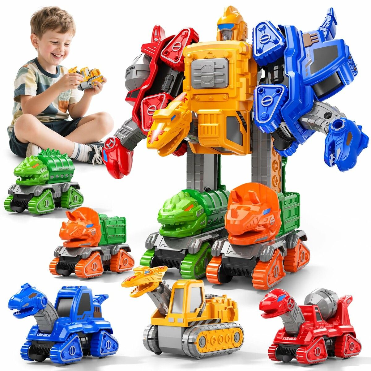 5 in 1 Transforming Robot Toys Set Construction Trucks, Dinos Vehicles Educational STEM Building Toy Cars Christmas Birthday Gifts for Boys Ages 3+