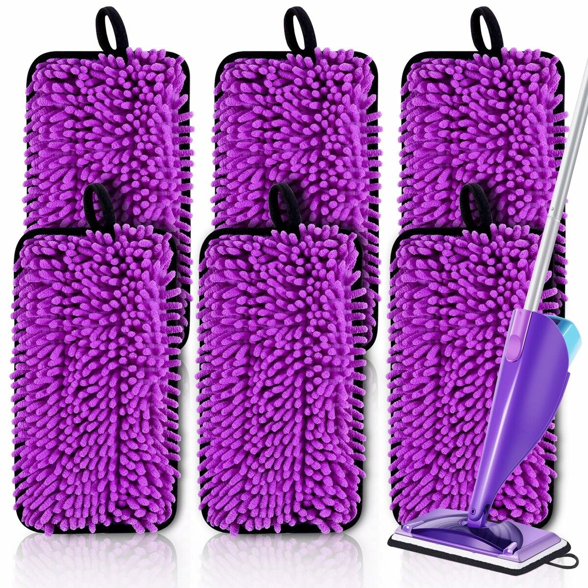 6 Pack Reusable Mop Replacement Pads Compatible with Swiffer Wet Jet Spray Mop,Wet Jet Refills for Swiffer 10-12 inch Pads for Dry Wet Mopping Cloths