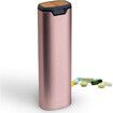 7 Day Weekly Pill Organizer, Premium Stylish Aluminum and Wood Large Capacity Pill Box for Supplements, Pills, Vitamins and Medication, Pink