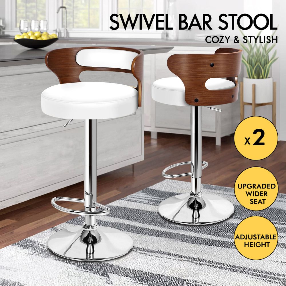 ALFORDSON 2x Bar Stool Kitchen Swivel Chair Wooden Leather Ramiro White