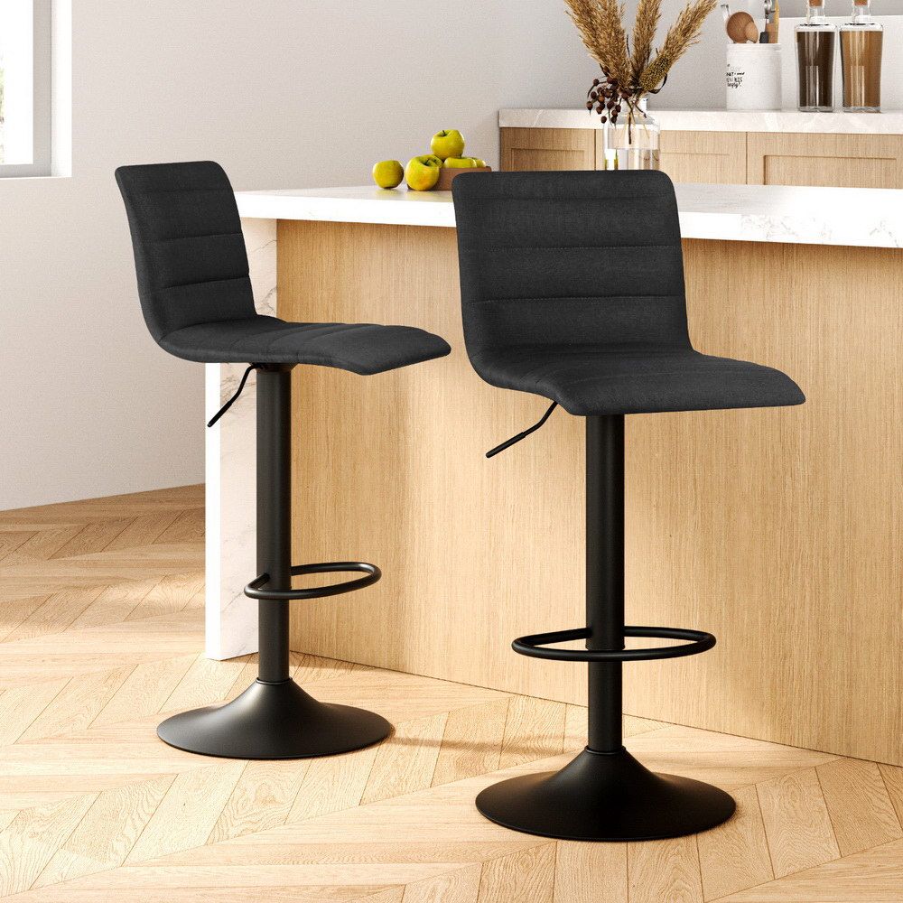 Artiss 2x Bar Stools Gas Lift Linen Fabric Black