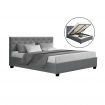 Artiss Vila Bed Frame Fabric Gas Lift Storage - Grey Queen