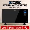With its sleek and slimline profile, our Devanti Glass Panel Heater is absolutely stylish from any angle. But more than just good looking, the 2000W heater is the perfect convection heater to heat up any area effectively. Comprising a metal and sleek black tempered glass body with efficient aluminium heating element, the panel heater ensures even heat dispersion all round. It comes with two heat settings and 24-hour timer that can be easily adjusted using the simple button control panel with LED display. A handy remote control also makes for easy operation of the heater from any location within range. Not least, the panel heater works ever so silently and features water splash resistance, safety tip-over switch and overheat protection for safe use always. The heater can be freestanding on the detachable base or wall-mounted using the included mounting accessories for space-saving installation. The slim and portable design means that our glass panel heater suits modern d?cor and can be conveniently carried around to be your preferred choice for any home or commercial establishment.