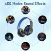 Bluetooth Headphones, 6S Foldable Wireless Headphones with 6 EQ Modes, HiFi Stereo Headset with Mic, TF FM for Cellphone PC, Black and Blue