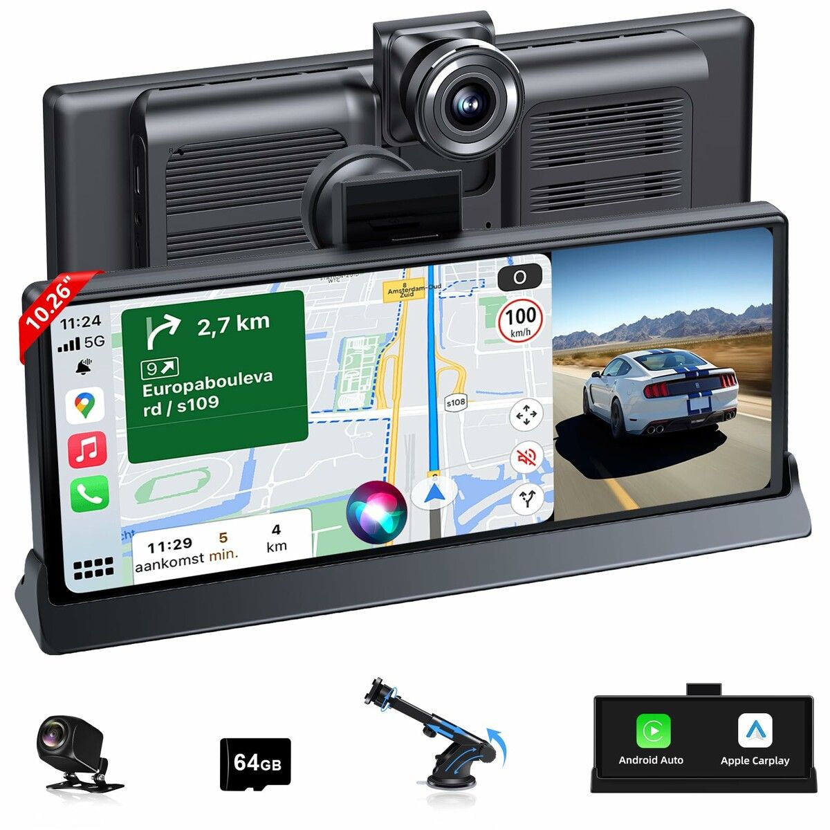 Car Tablet Pro Max 10.26In Car Play Screen Designed for Apple & Android Touchscreen Portable CarPlay Screen with Dash Cam GPS Navigation