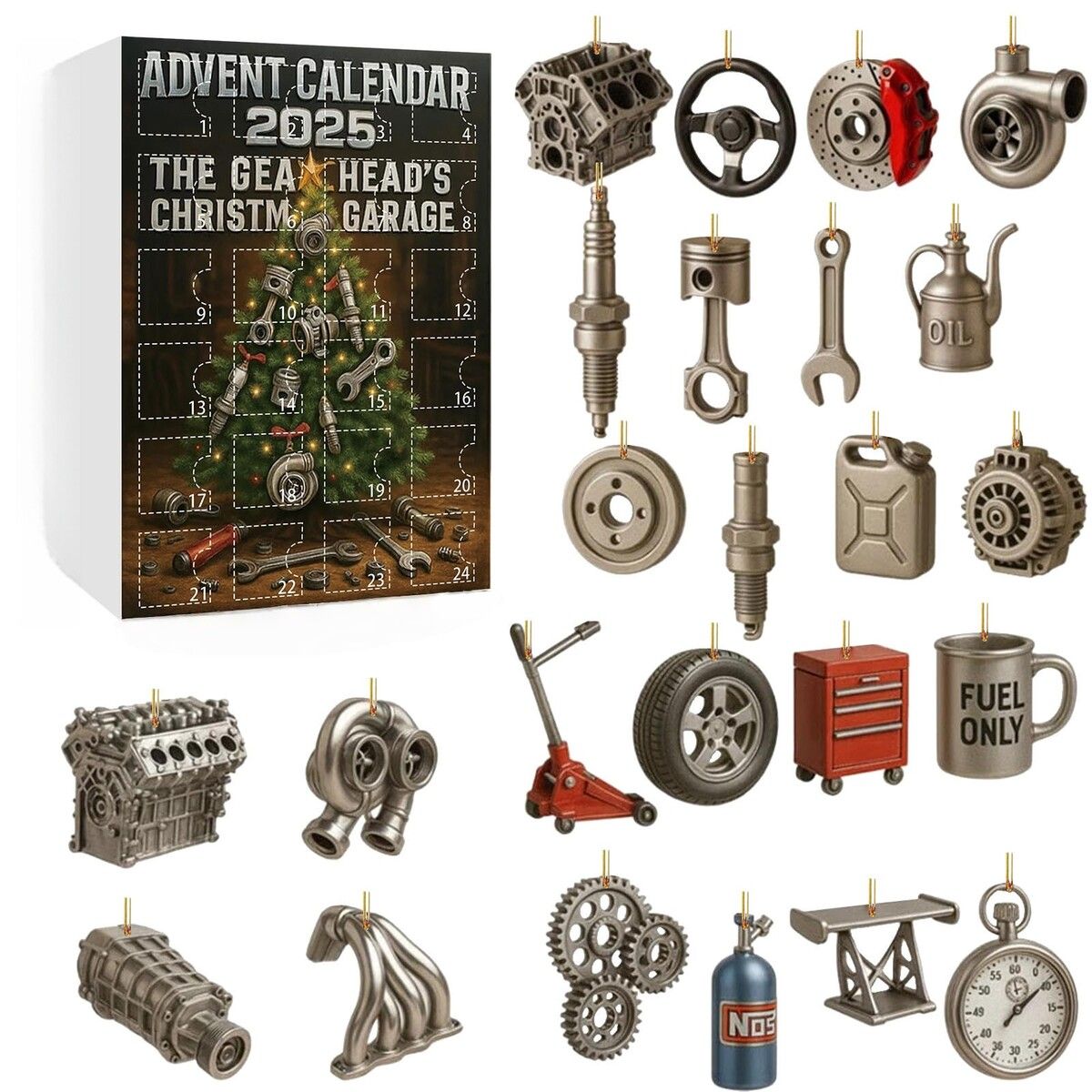 Christmas Advent Calendar Gearhead Christmas Garage,24 Days Of Miniature Car Parts Tools Gear Head Ornament,Christmas Gifts For Car Mechanics Lovers