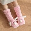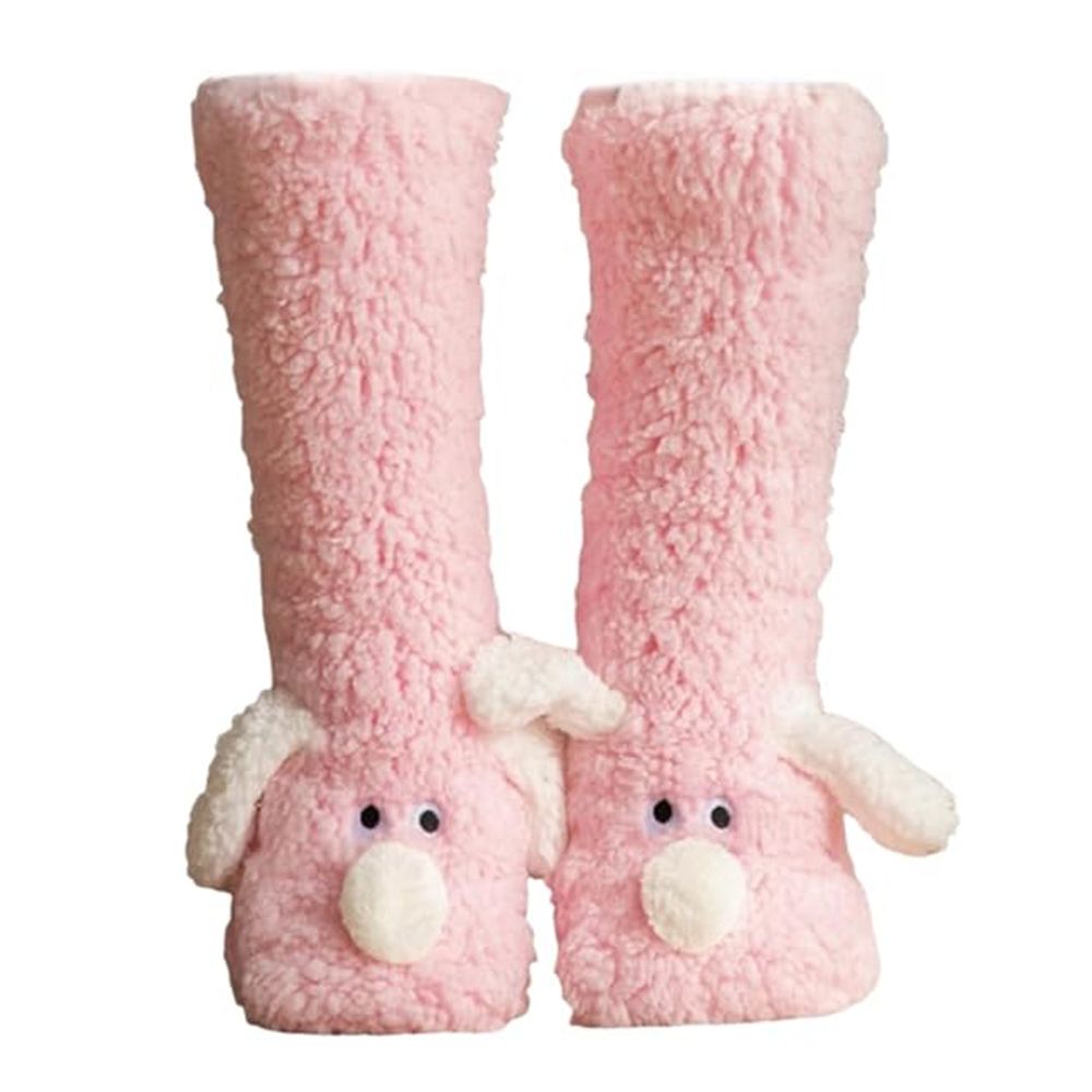Cozy Thick Coral Fleece Non-Slip Slipper Socks for Women, Cute Puppy Plush Fuzzy Warm Thermal Boot Socks for Winter, One Size, Pink