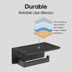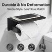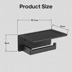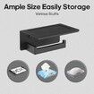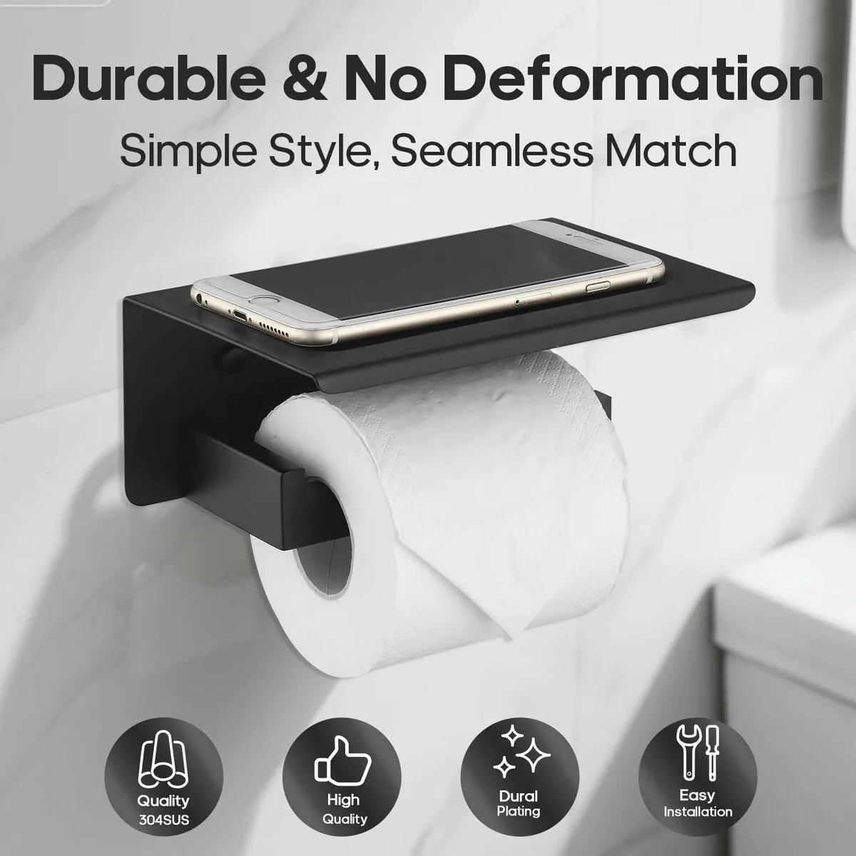 Extra-Large Toilet Paper Holder with Phone Shelf, Wall Mounted 304 Stainless Steel Bathroom Organiser for Drill-Free or Screw-in Installation (Black)