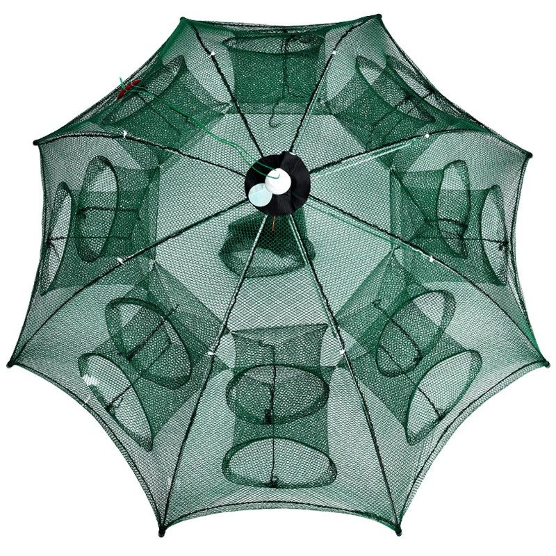 Fishing Net Crab Net Telescopic Hand Throw Net Foldable Umbrella Crab Trap 16 Holes Collapsible Lobster Crayfish Cage Non Escape Design With Bag Rope