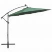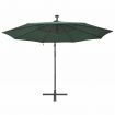 Hanging Parasol with LED Lighting 300 cm Green Metal Pole