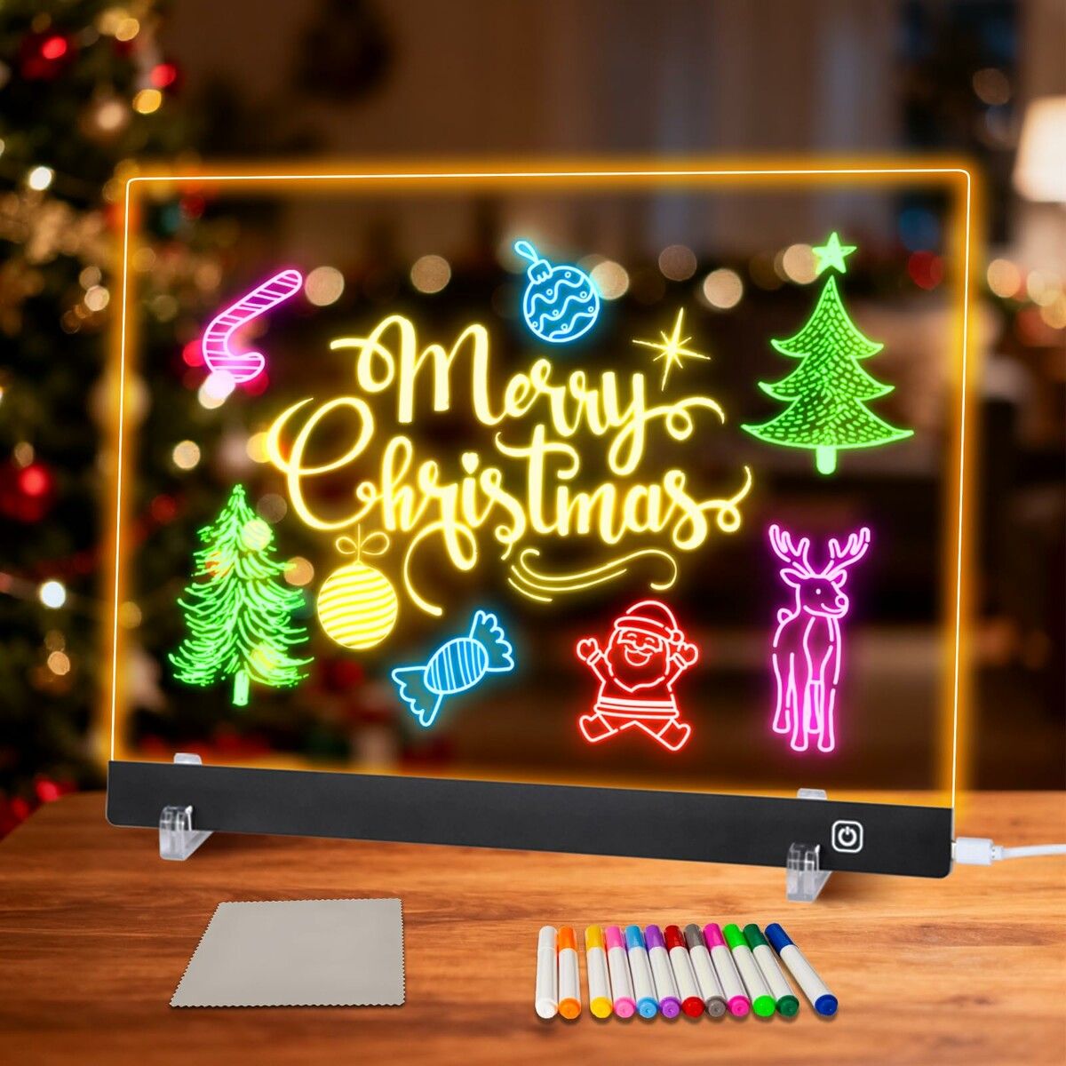 LED Note Board with Colors,40 x 30 cm Led Drawing Board for Kids,Light Up Acrylic Dry Erase Boards with Stand,Christmas & Birthday Gifts,Black