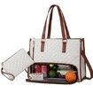 Lunch Tote Bag For Women,Laptop Bag with Insulated Lunch Compartment,Large Capacity Computer Handbag with Purse For School,Work,Office,Casual,White