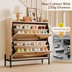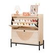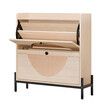 Oak Shoe Rack Cabinet Rattan Drawers Wooden Storage Cupboard Slim Narrow Footwear Organiser Shelf Metal Legs Modern Hallway Entryway Closet Furniture