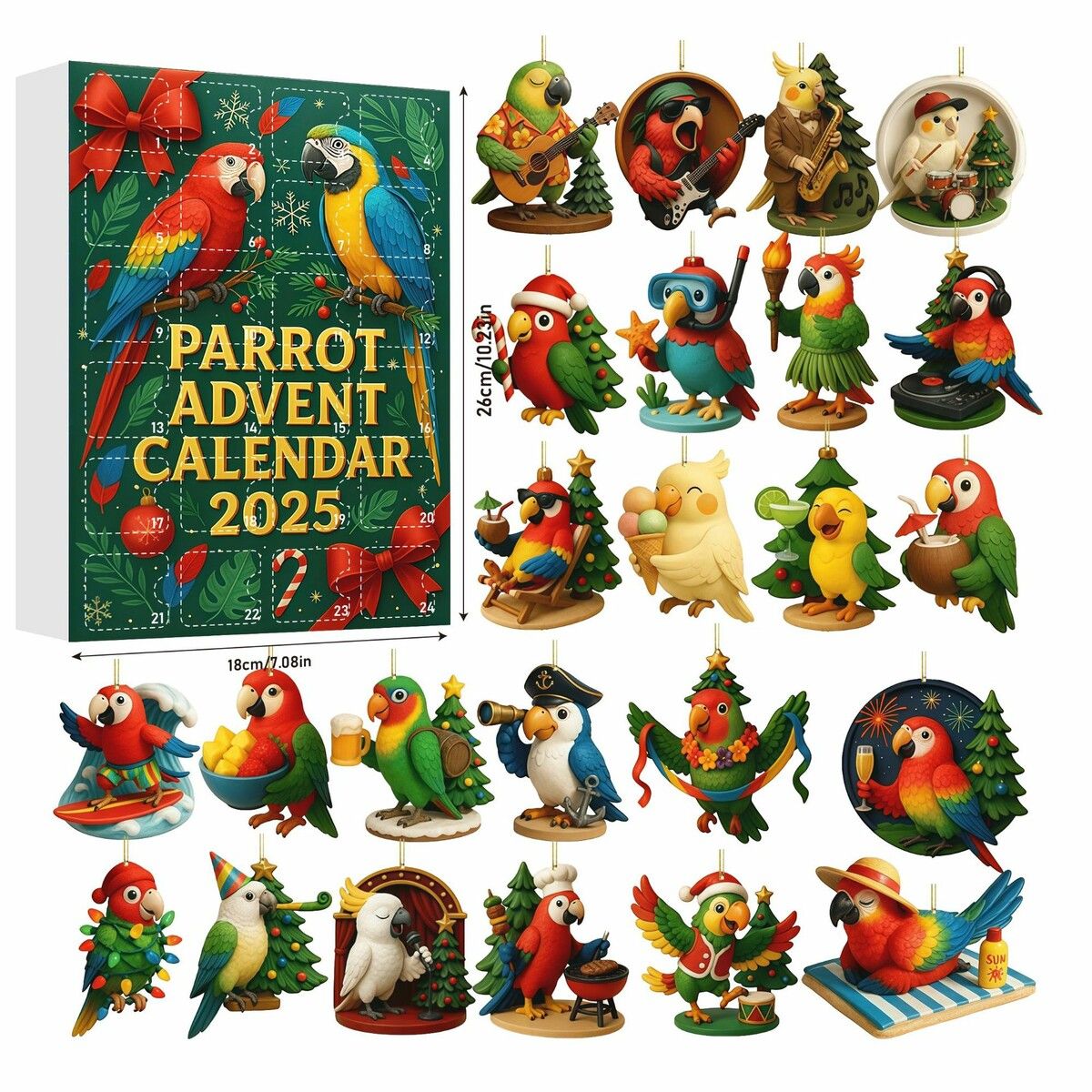 Parrot Bird Christmas Advent Calendar 2025,24-Day Christmas Countdown Ornaments,Unique Holiday Decoration Gift for Nature Lovers
