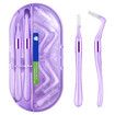 Portable Box Interdental Brush, Soft Dental Brush of Teeth Cleaning Tools, 2 Handles and 16 Replacement tips for Effective Plaque Removal, Purple