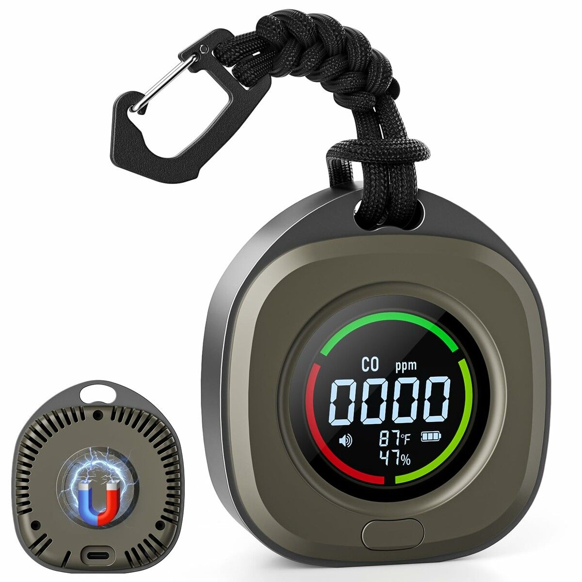 Portable Carbon Monoxide Detectors for Travel 3-in-1 Square Carbon Monoxide Monitor with 43 Detection Holes,RV CO Detector Alarm Temp/Humidity Sensor