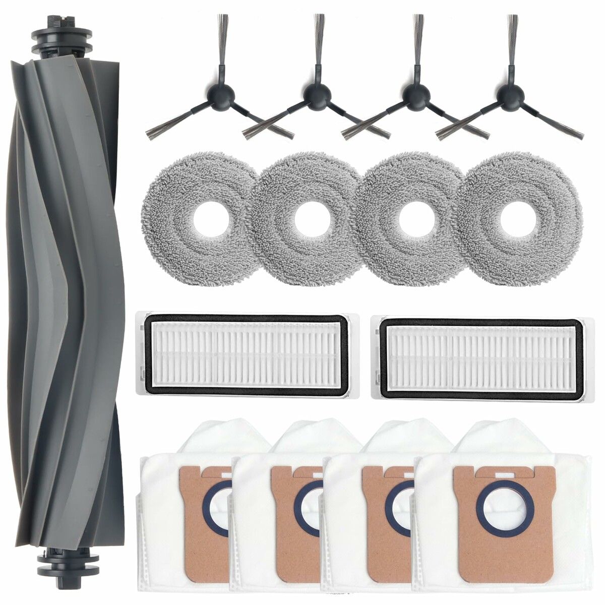 Replacement Parts for Dreame L20 Ultra / L30 Ultra Robot Vacuum Cleaner, 1 Main Brush, 4 Dust Bags, 4 Mop Pads, 2 HEPA Filters, 4 Side Brushes