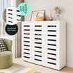 Shoe Rack Storage Cabinet Wooden Narrow Slim Hallway Entryway Footwear Organiser Cupboard Unit 30 Pairs 3 Door Adjustable Shelves Closet Modern White