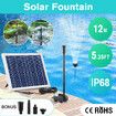 Solar Fountain Water Feature Pump Kit 12W Submersible Panel Waterfall Bird Bath Fish Pond Pool Garden Decoration Energy Powered Nozzles Outdoor Indoor