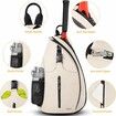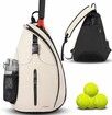 Tennis Bag Tennis Sling Backpack Crossbody Water Resistant for Men Women,Compatible for Pickleball Badminton Rackets-Beige
