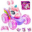 Unicorn Remote Control Car for Girls, 360 Degree Rotating 4WD Stunt RC Cars with Cute Lights, Rechargeable Car Toys for Girl Age 3 to 8