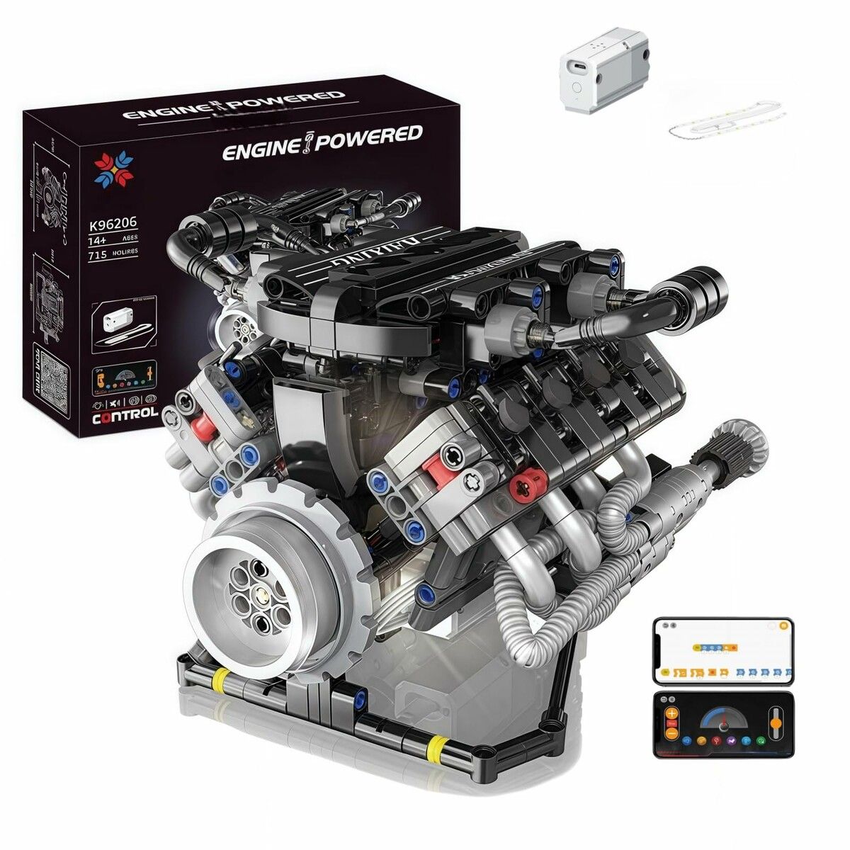 V8 Engine Building Kits That Runs with Motor 660Pcs Visible APP Controls Operation Model,8-Cylinder Transparent Design Car Engine Building Engineering Set
