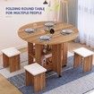 Wooden Folding Dining Table and 4 Chairs Set Round Table with Wheels